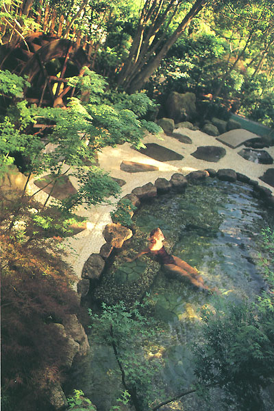 | リゾート地での昼下がり、たいがいの人はホテルで昼寝か読書と決め込む。容赦なく照りつける太陽のお陰で、日光浴も空気浴もこの時間帯は逆効果になってしまうからだ。 でも、森林内では違う。樹木のフィルターによって、炎天下でもやわらかい光線が得られ、紫外線から肌を守りながら温和な日光浴ができるのだ。さらに、空気中の粗大な粉塵や有害な不純物も濾過されており、また光合成により多くの酸素が放出されている。 そのほか、植物が自分を襲う細菌、カビ、原虫類から身を守るために発散している因子、フィトンチッドのほのかな香りが気分を和らげてくれる。これは、平地や海、山にはない、森林だけが持つ素晴らしい環境だ。 温泉リゾートで、昼の露天風呂にゆっくりと浸ってみるなんて贅沢。ふくいくとした森林内の香りが嗅覚を刺激し、快感を覚えさせてくれる。いい香りは分泌機能を高め、副交感神経の働きを優位にする。温泉の中で肢体はさらに伸び伸びとリラックスでき、疲れやストレスは一気に吹っ飛んでしまう。 |